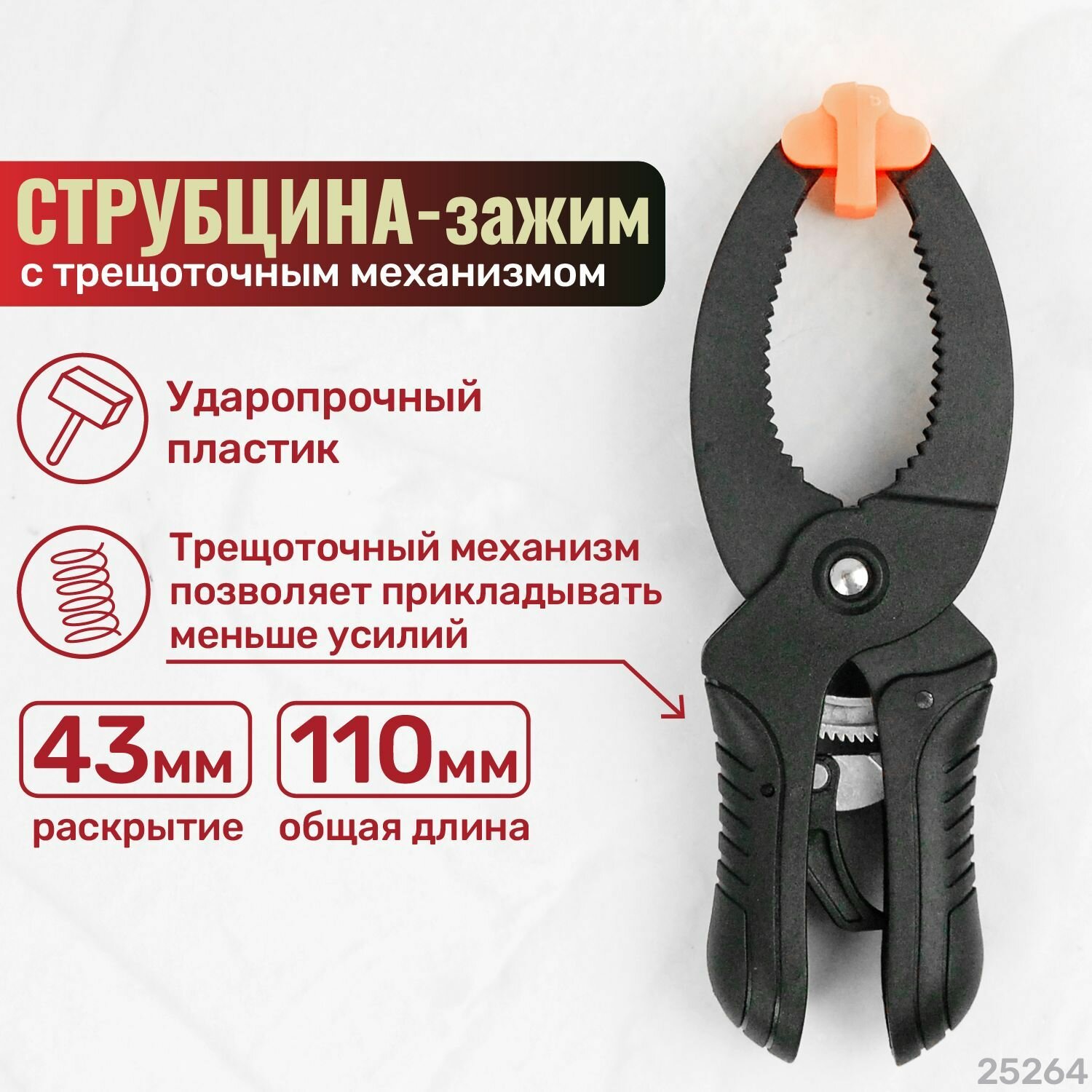Струбцина-зажим 110-43 мм с трещоточным механизмом пластик SKRAB 25264