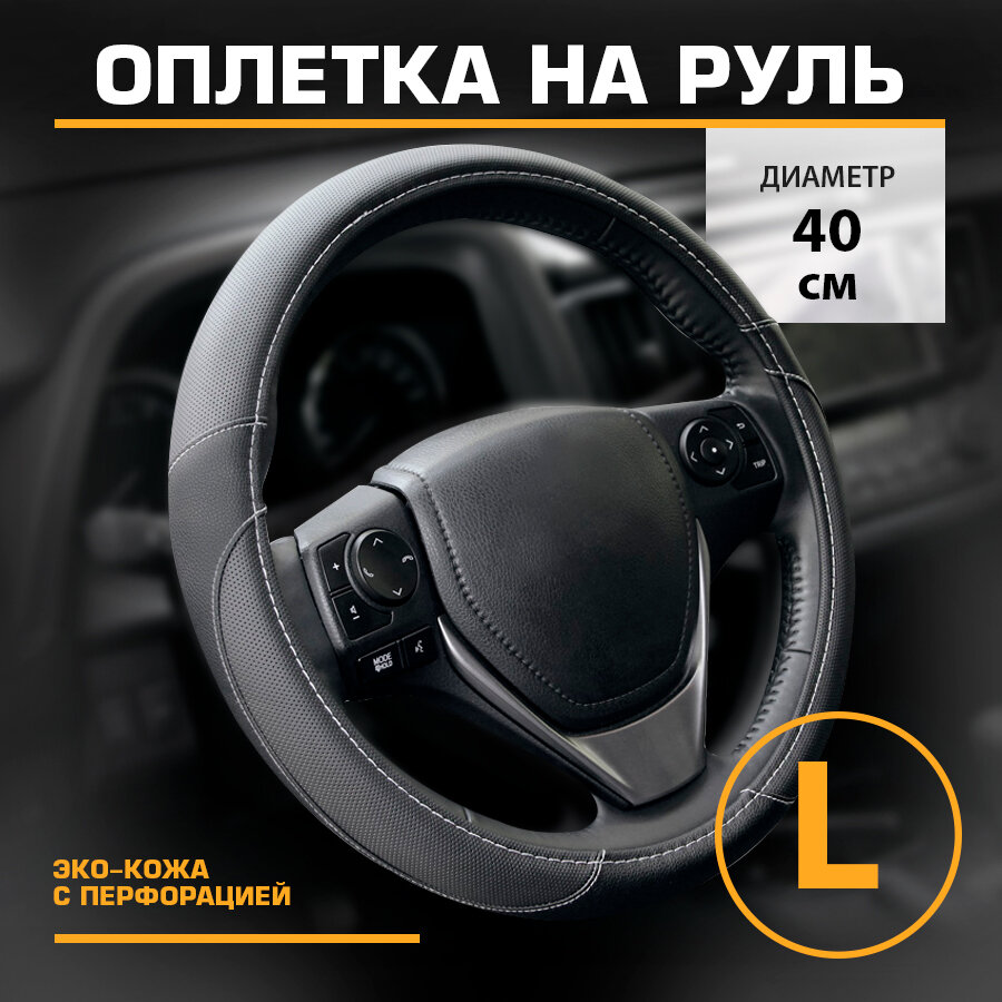 10 цен на Оплетка на руль L 40см экокожа с перфорацией черный (KRAFT)