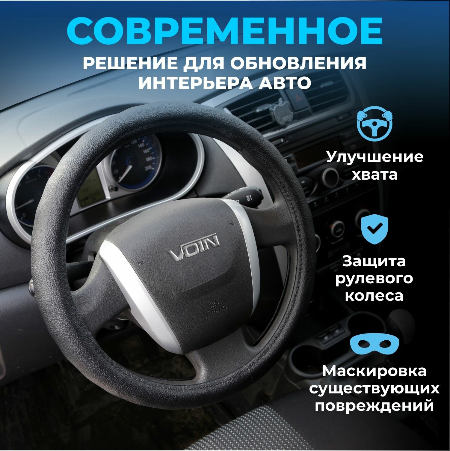 10 цен на Оплетка на руль VOIN CLASSIK экокожа, М, черный