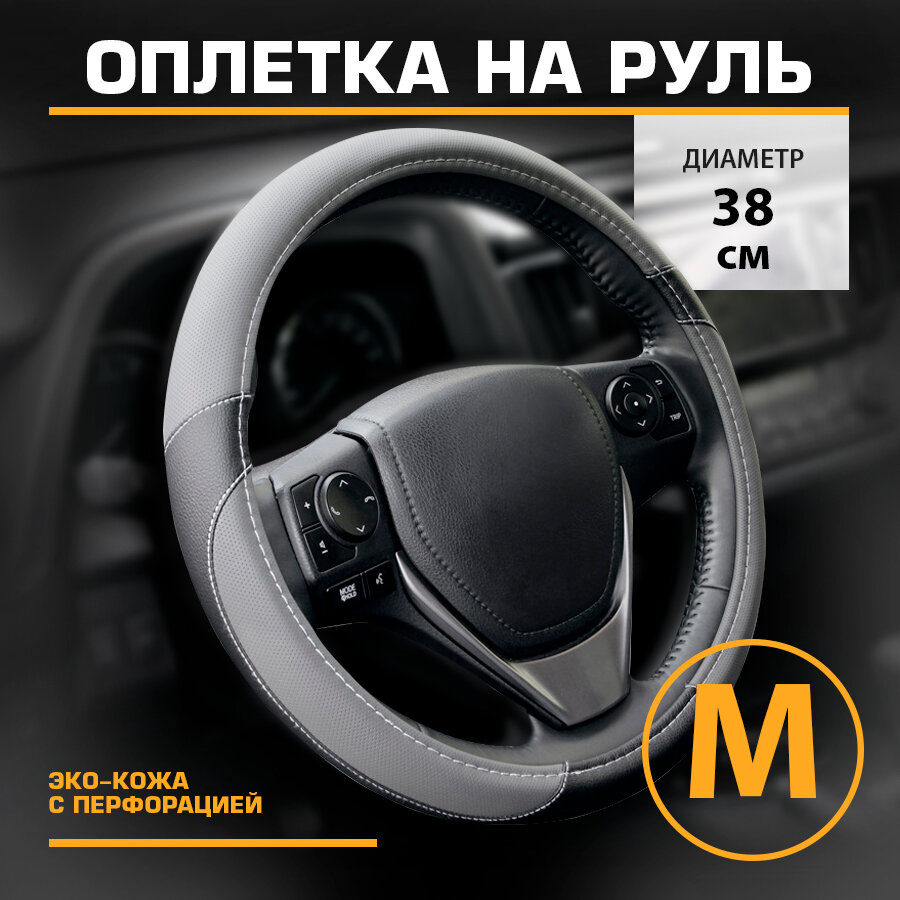 Оплетка Рулевого Колеса Эко-Кожа Гладкая С Перфорированными Вставками. Черно-Серая/Белая Строчка. Диаметр 37-39 См. Размер М ... 910 ₽