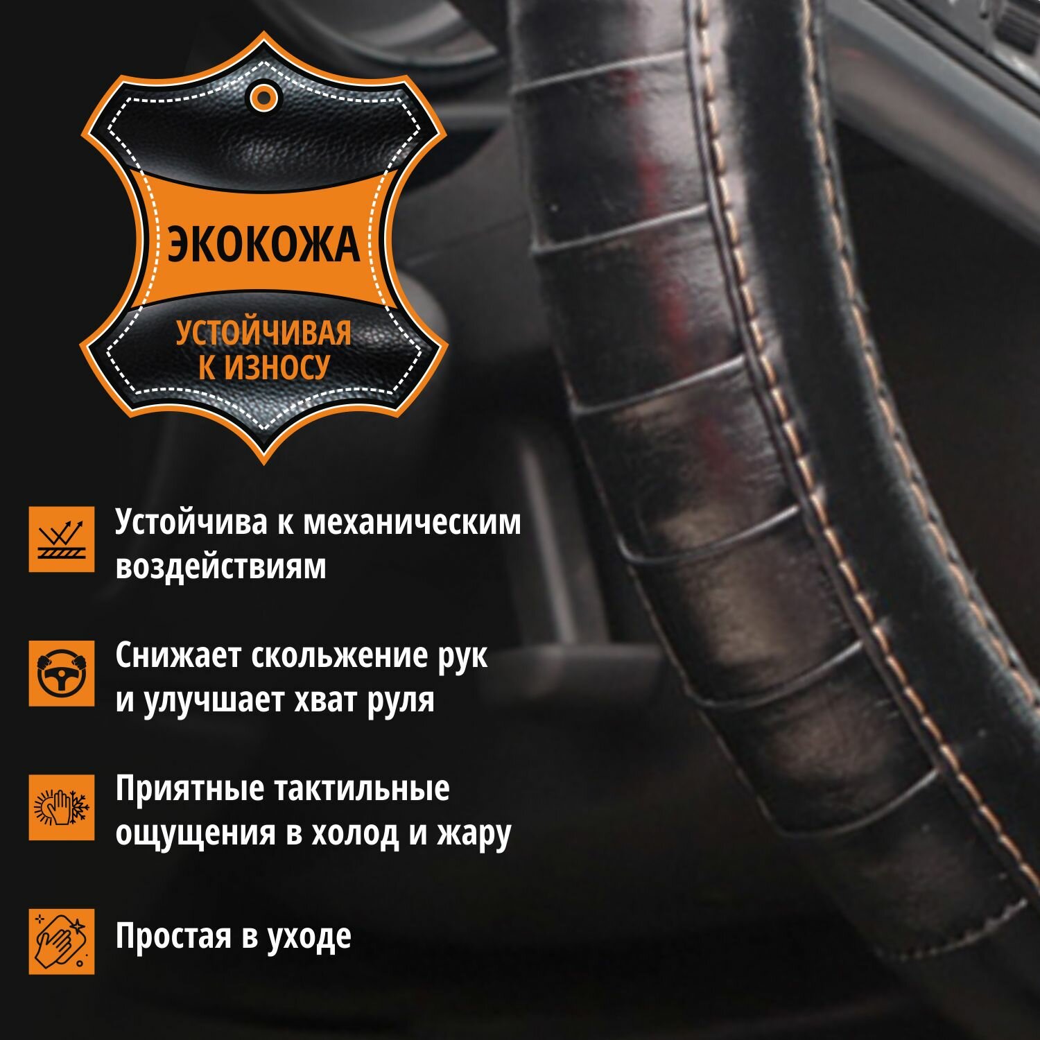 10 цен на Оплетка на руль кожаная SENATOR Kanzas "M", 38см, черный