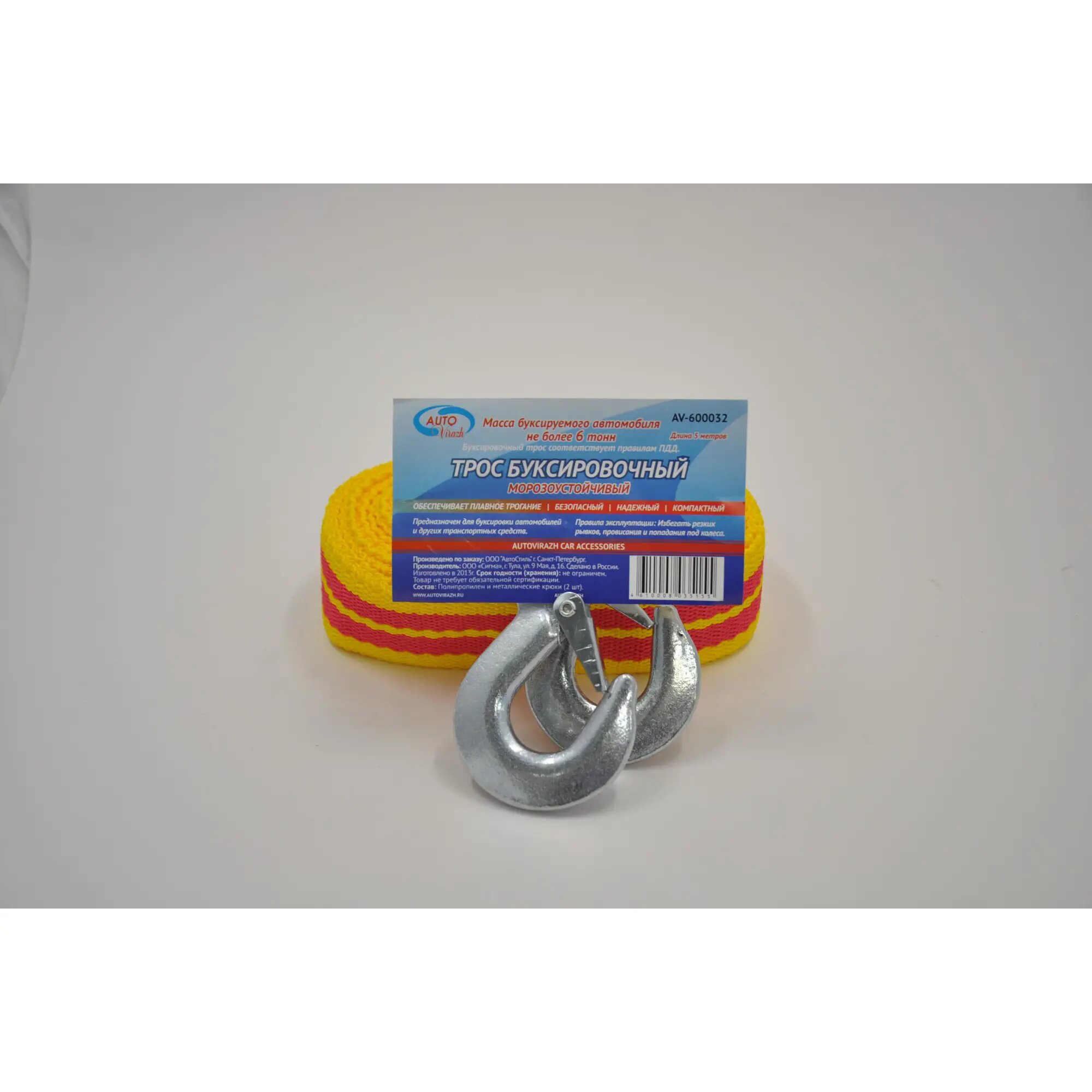 Отзывы на Трос-лента буксировочный 6т5м 2 крюка AUTOVIRAZH в пакете ZIP LOCK, AV600032 AUTOVIRAZH AV-600032
