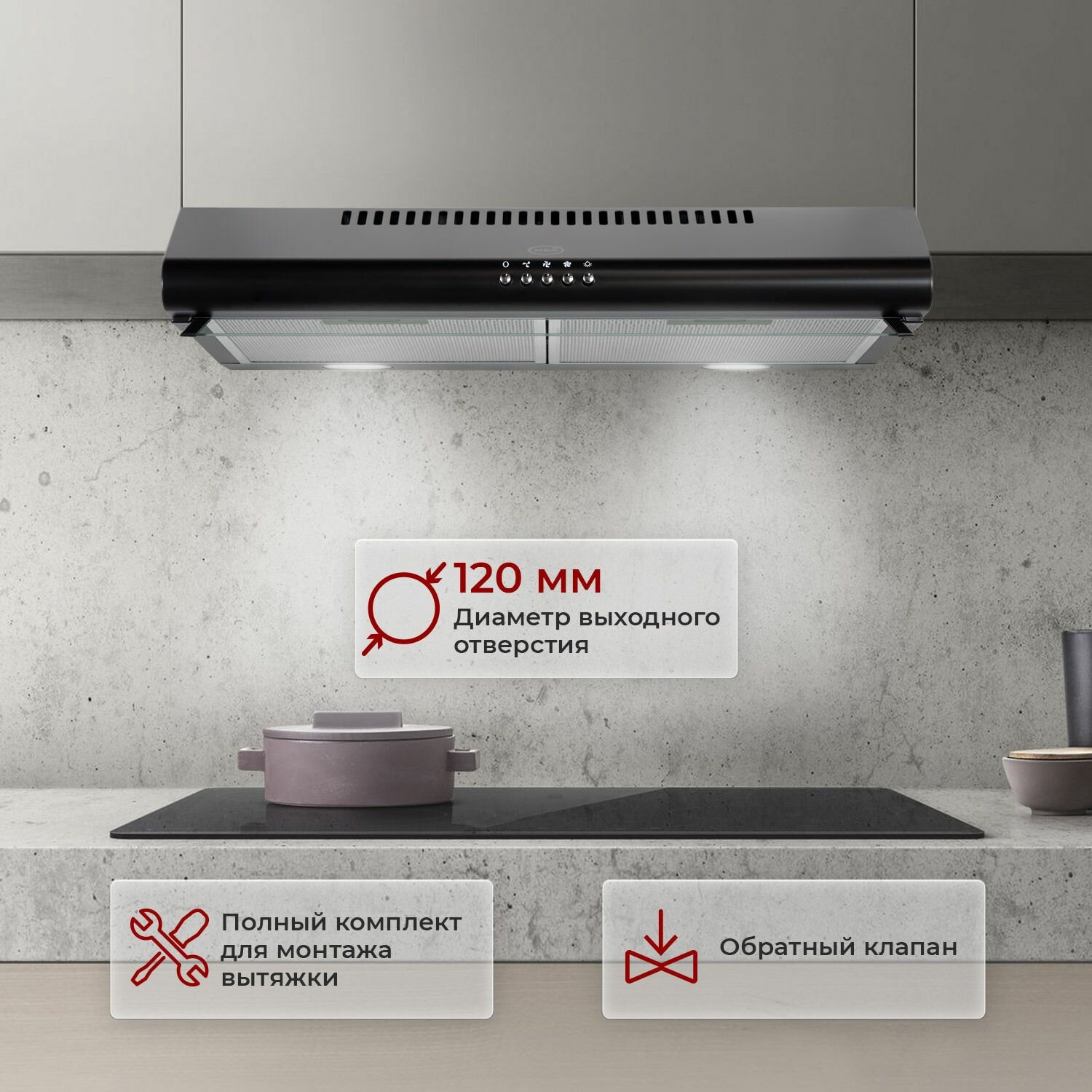 10 цен на Кухонная вытяжка подвесная MBS VELEZIA 150 BLACK/50 см/производительность 650м3/ч, низкий уровень шума.