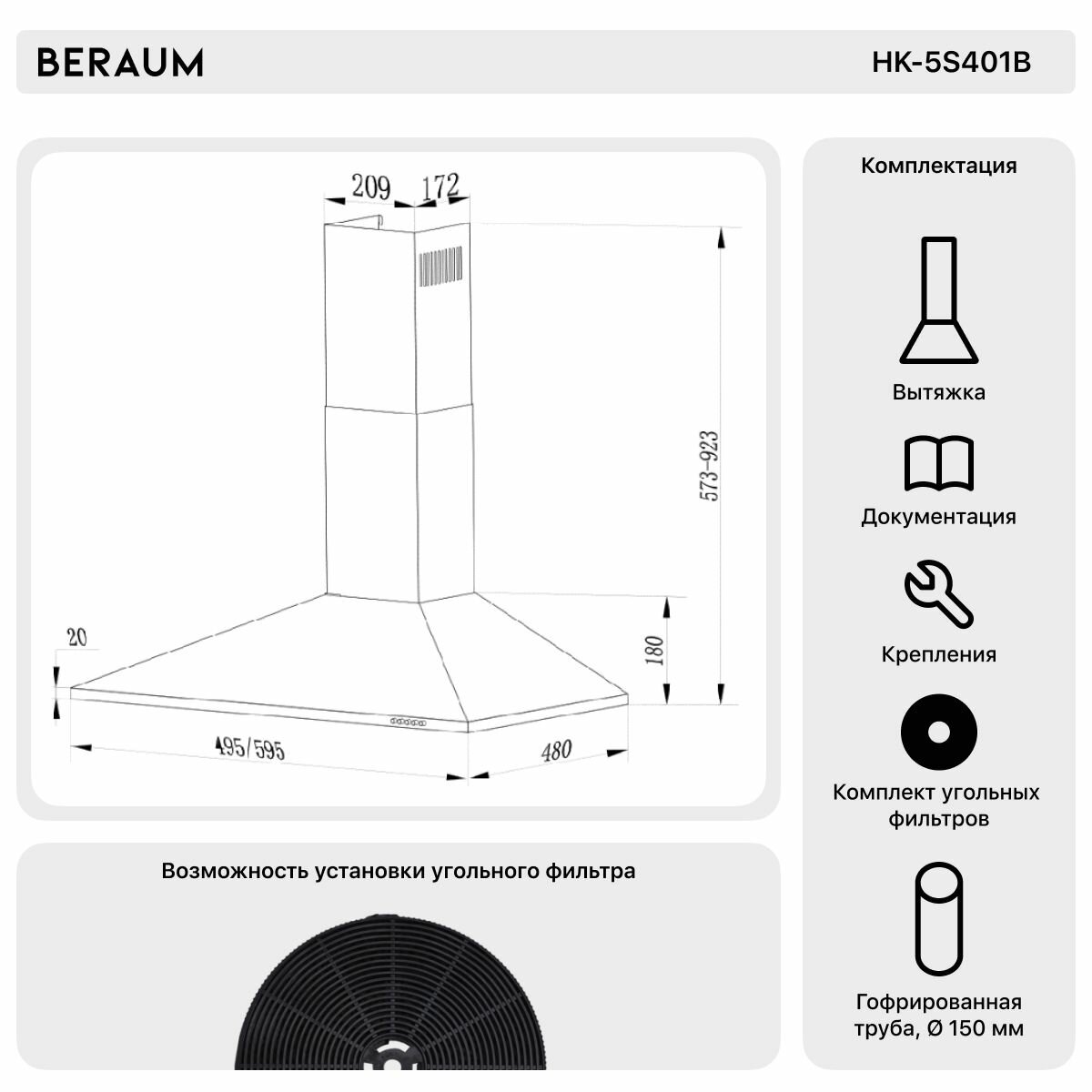 Вытяжка купольная Beraum HK-5S401B информация: