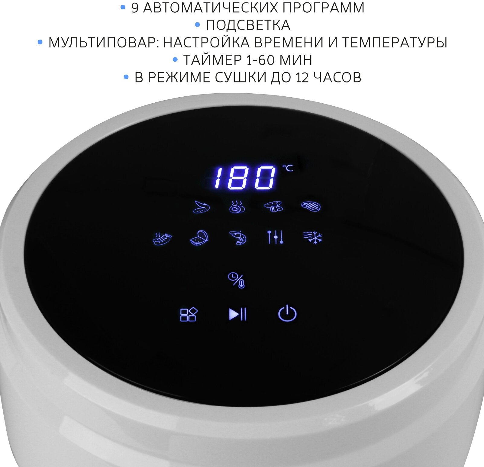10 цен на Аэрогриль HOTTER HX-001, стеклянная чаша 3,5 л, 9 автопрограмм, регулировка времени и температуры, белый.