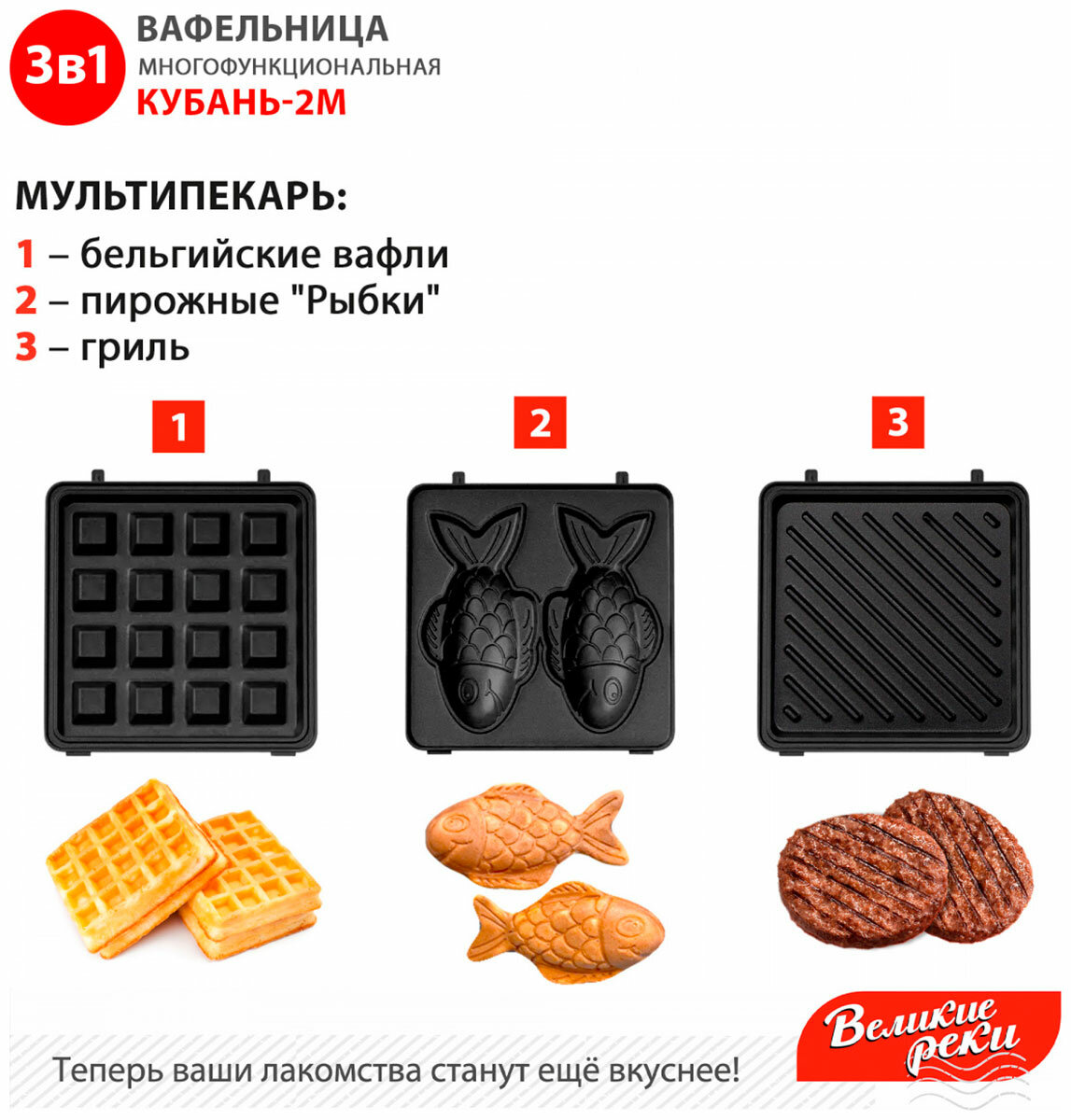 Отзывы на Великие Реки Вафельница Кубань-2М белая, 3 в 1, съемные панели, 750 Вт, трафарет для сахарной пудры в подарок 00-00044296