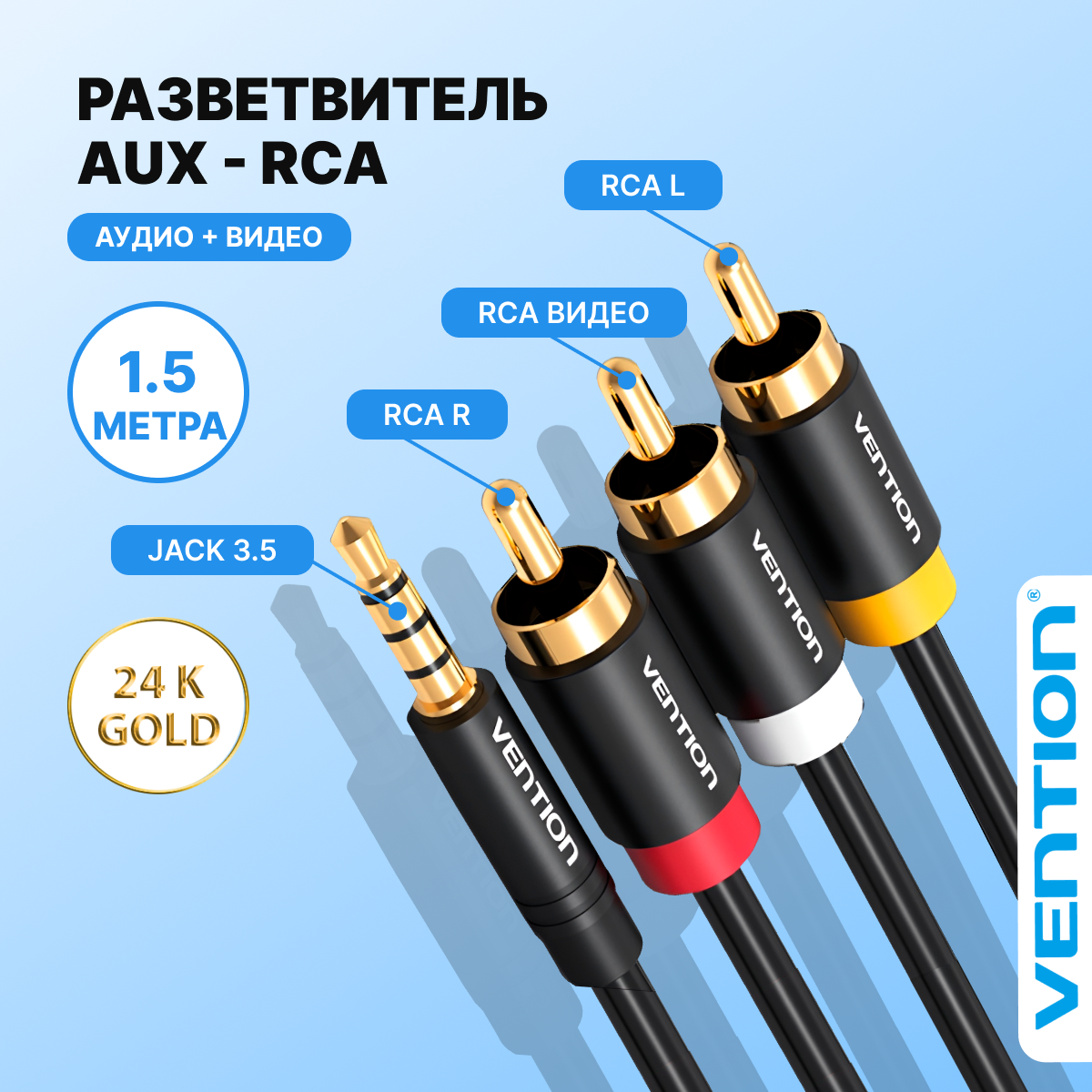 Кабель видео 1xMini Jack - 3xRCA Vention VAB-R07-B150 1.5m информация: