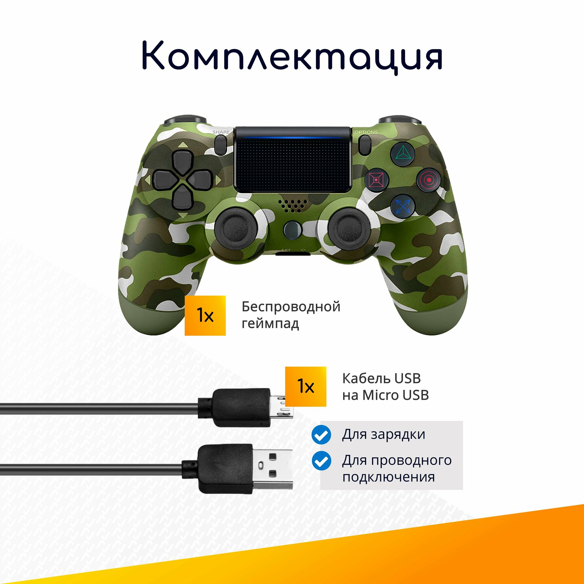 Беспроводной геймпад для PS4 с зарядным кабелем, зеленый камуфляж / Bluetooth / джойстик для PlayStation 4, iPhone, iPad, Android, ПК / Original Drop 2 829 ₽