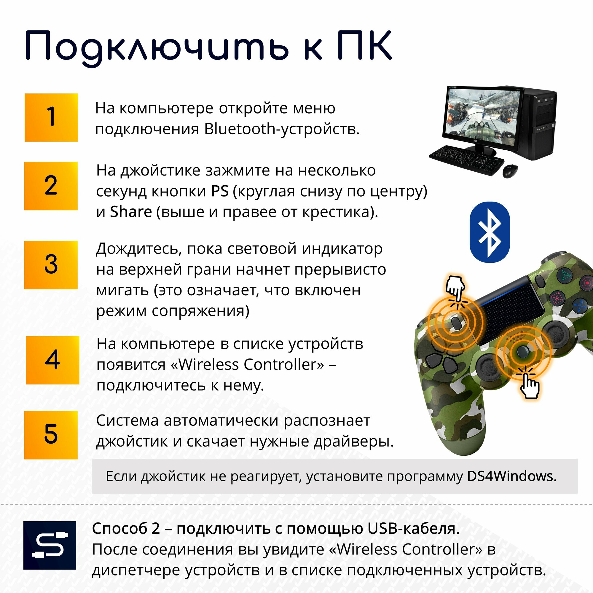 Отзывы на Original Drop / Игровой геймпад, беспроводной джойстик для PS4, ПК, телефона, bluetooth зеленый камуфляж