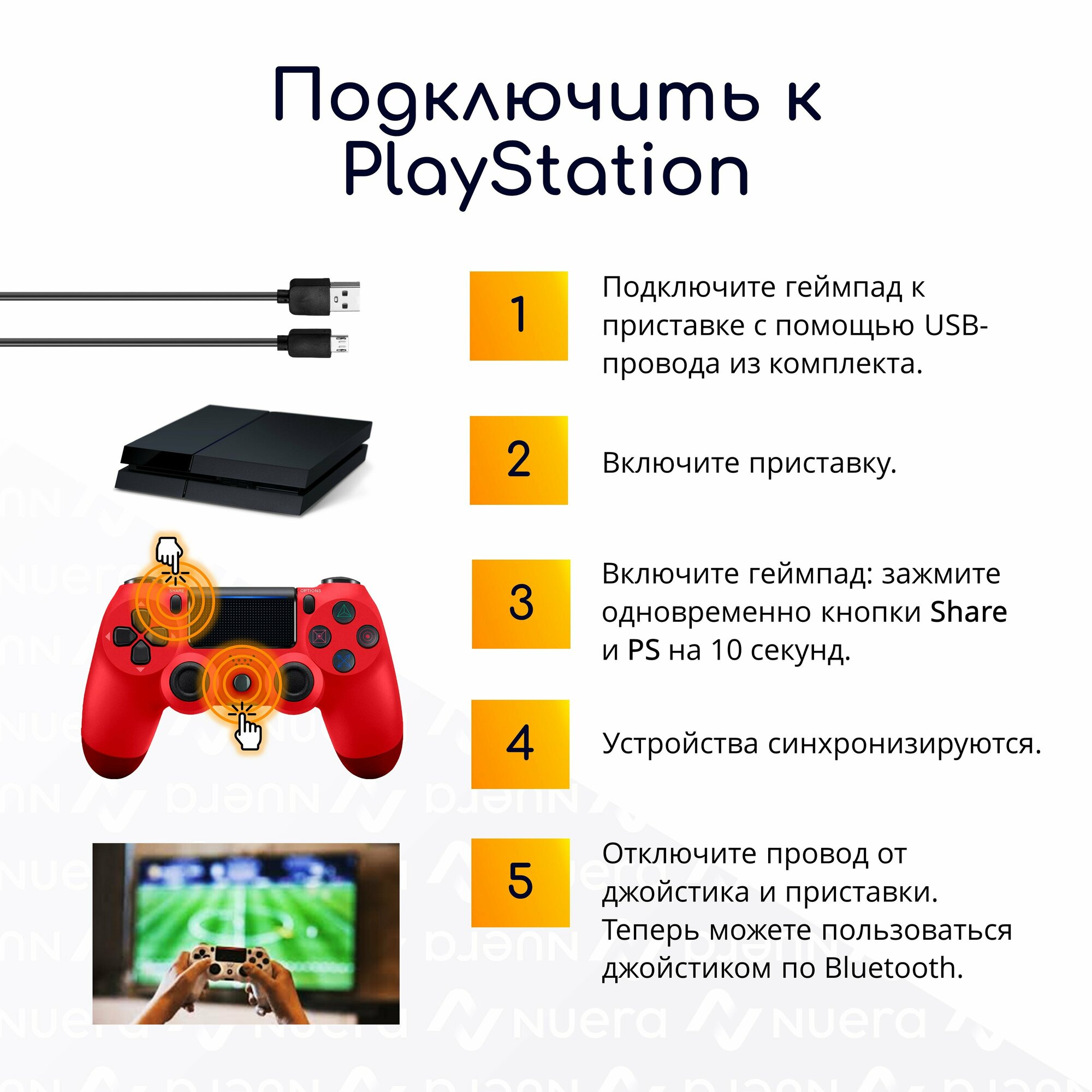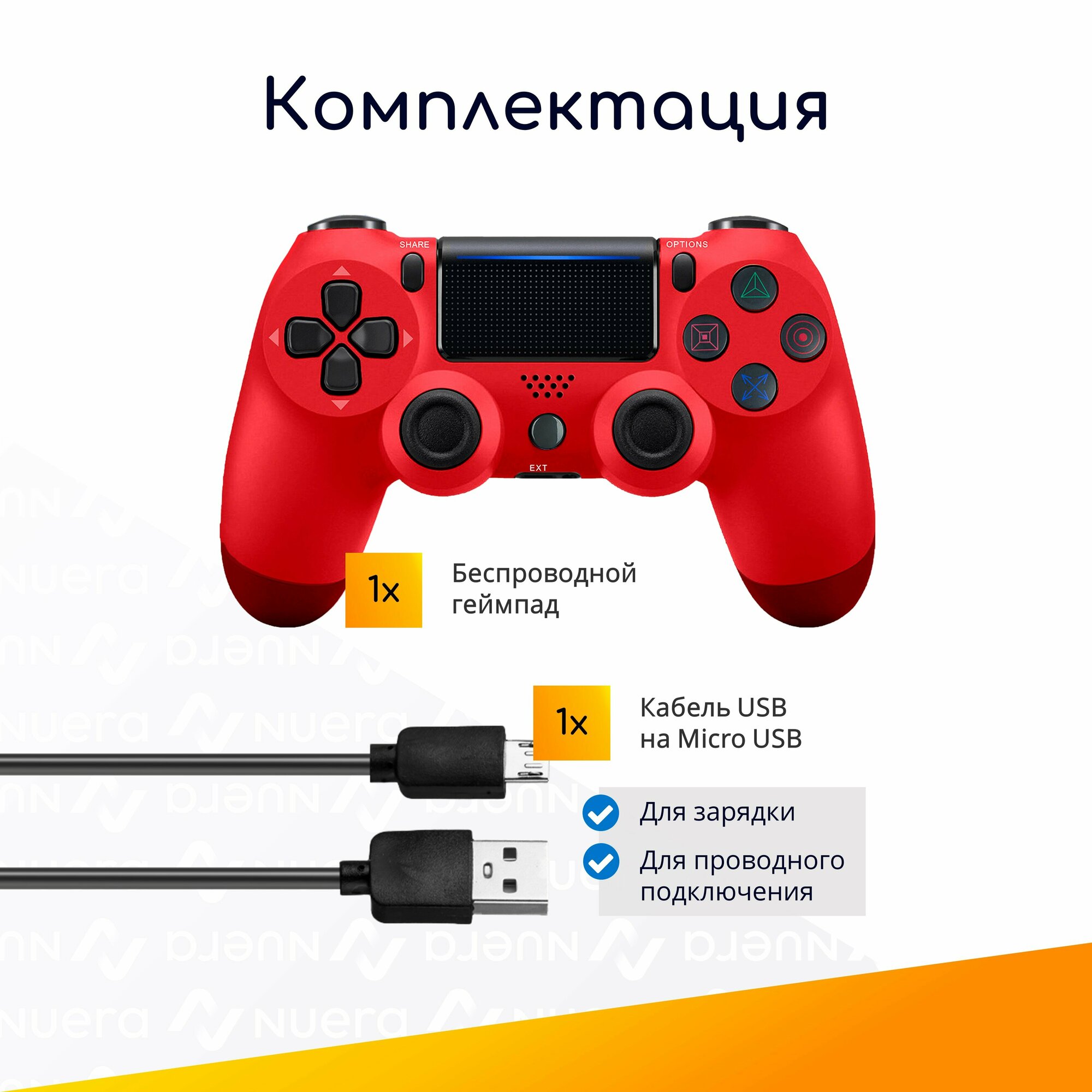 Беспроводной геймпад для PS4 с зарядным кабелем, красный / Bluetooth / джойстик для PlayStation 4, iPhone, iPad, Android, ПК / Original Drop 2 519 ₽
