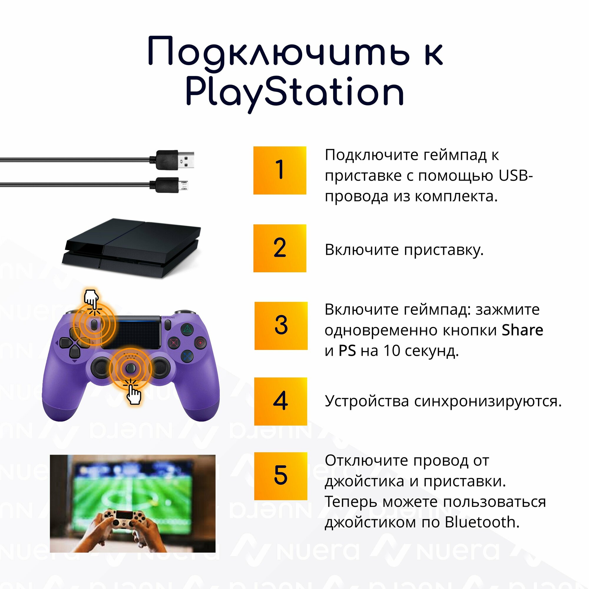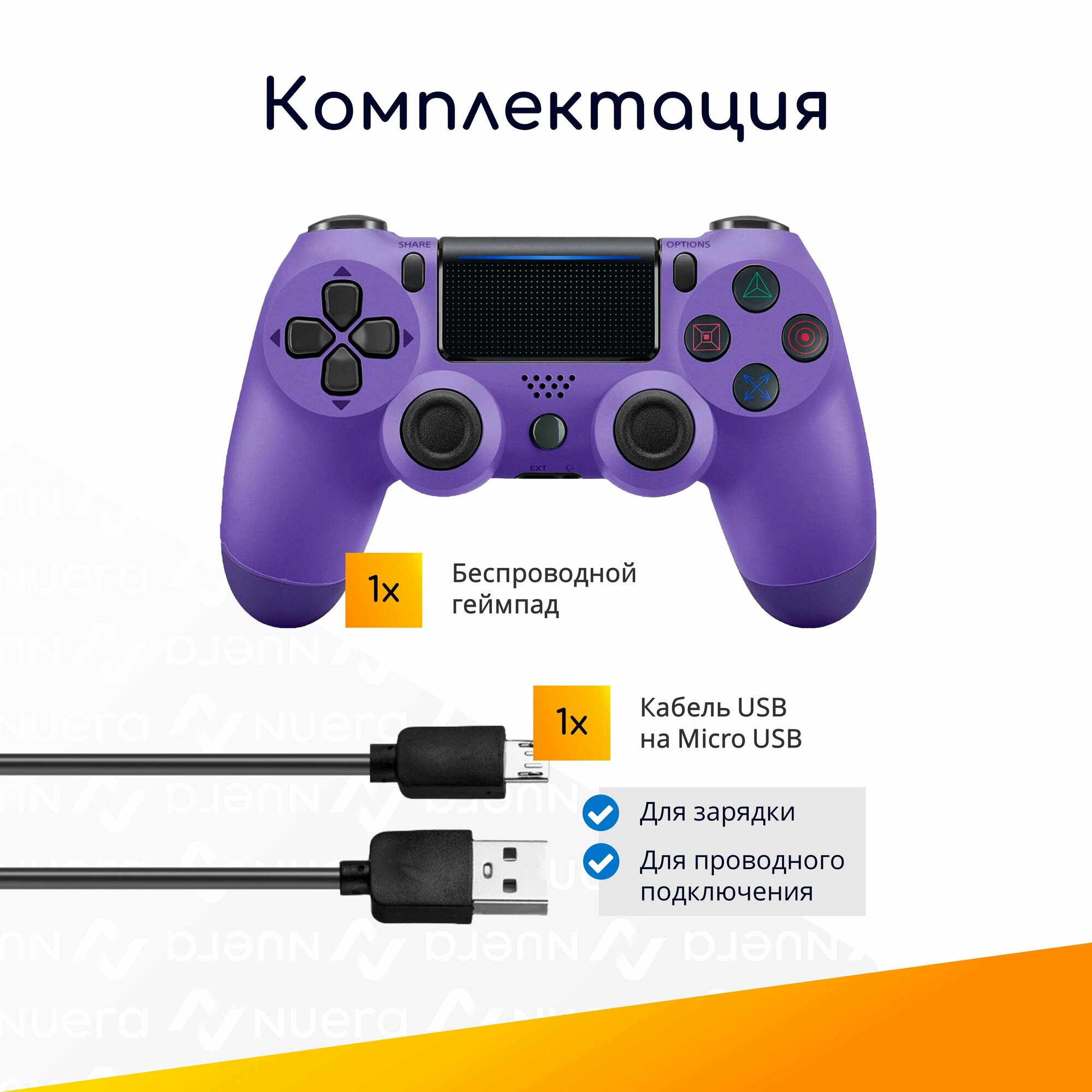 Беспроводной геймпад для PS4 с зарядным кабелем, фиолетовый / Bluetooth / джойстик для PlayStation 4, iPhone, iPad, Android, ПК / Original Drop 2 519 ₽