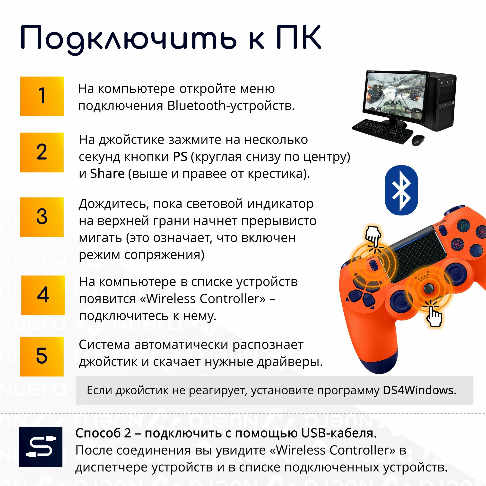 Original Drop / Игровой геймпад, беспроводной джойстик для PS4, ПК, телефона, bluetooth, оранжевый информация: