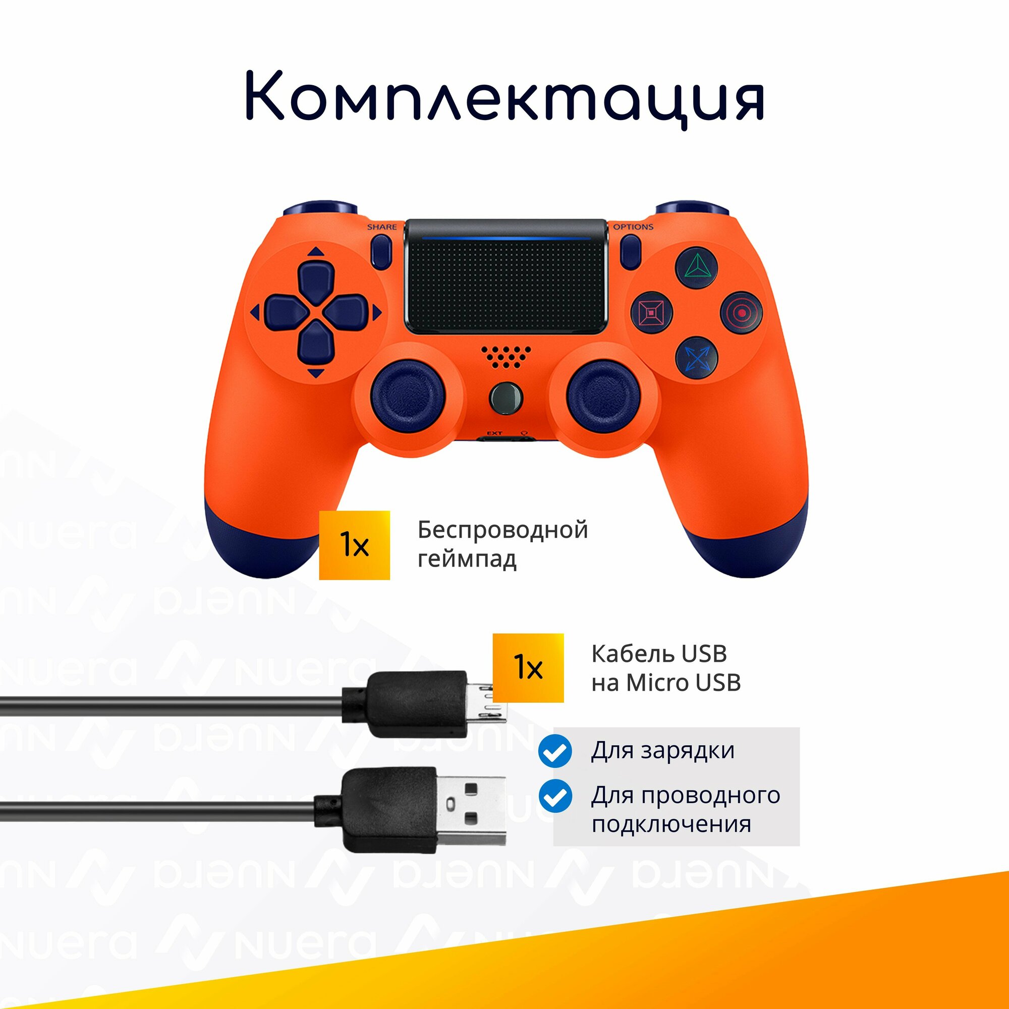 Беспроводной геймпад для PS4 с зарядным кабелем, оранжевый / Bluetooth / джойстик для PlayStation 4, iPhone, iPad, Android, ПК / Original Drop 2 519 ₽