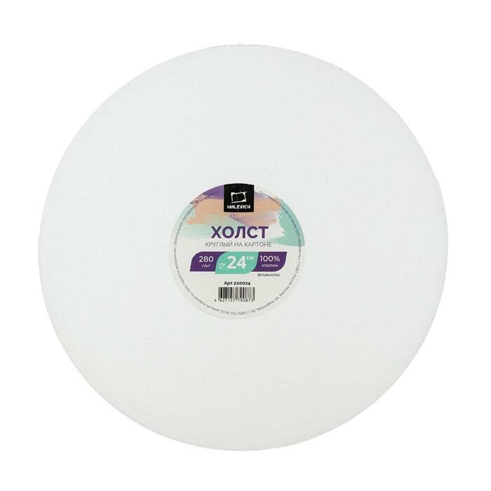 Малевичъ Холст Круглый на картоне d-24 см, 3 мм, хлопок 100%, акриловый грунт, мелкозернистый, «Малевичъ» информация: