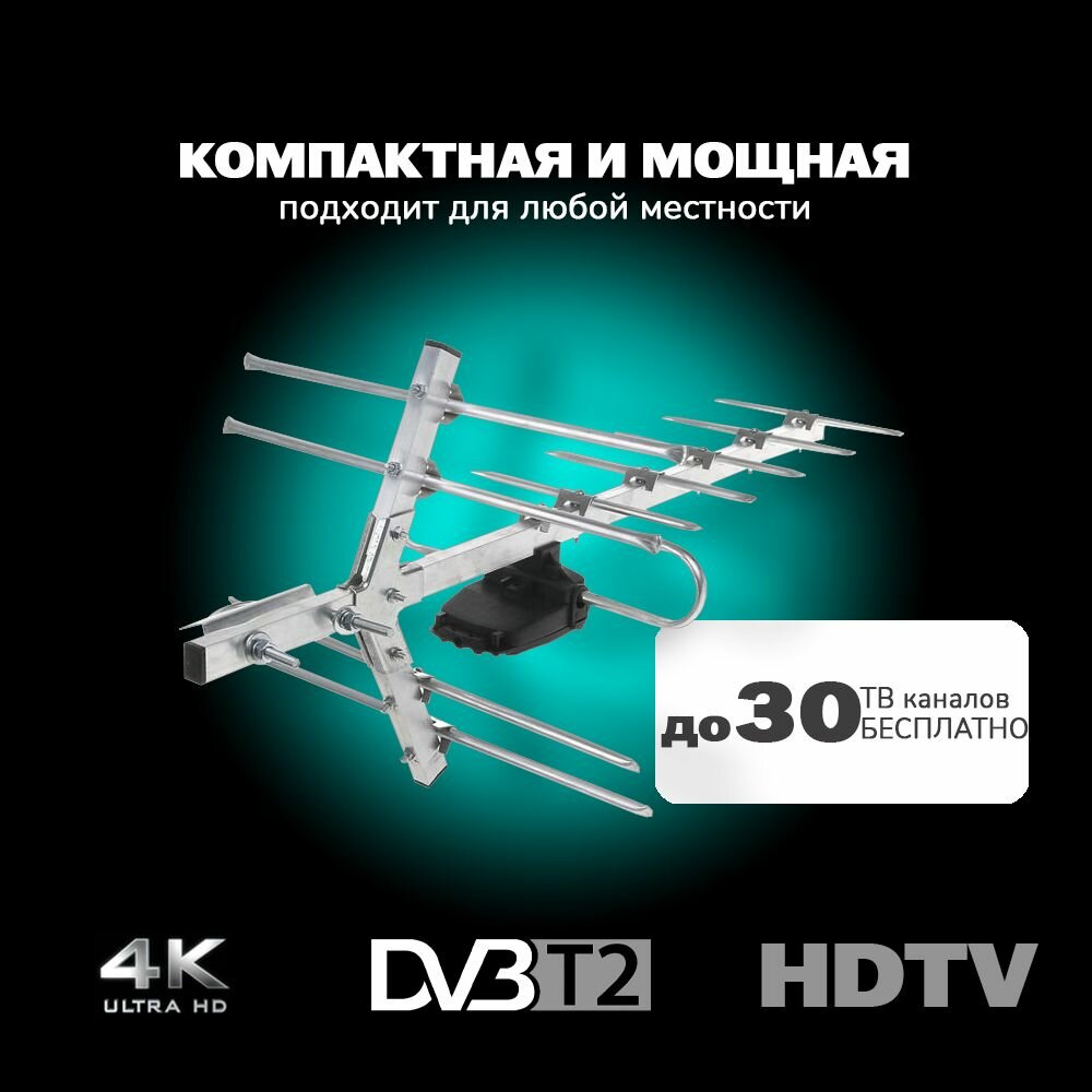 Антенна для цифрового тв уличная для телевизора Спектр 12, активная для бесплатного цифрового телевидения / Усилитель 9001 и Блок питания для антена 4 649 ₽