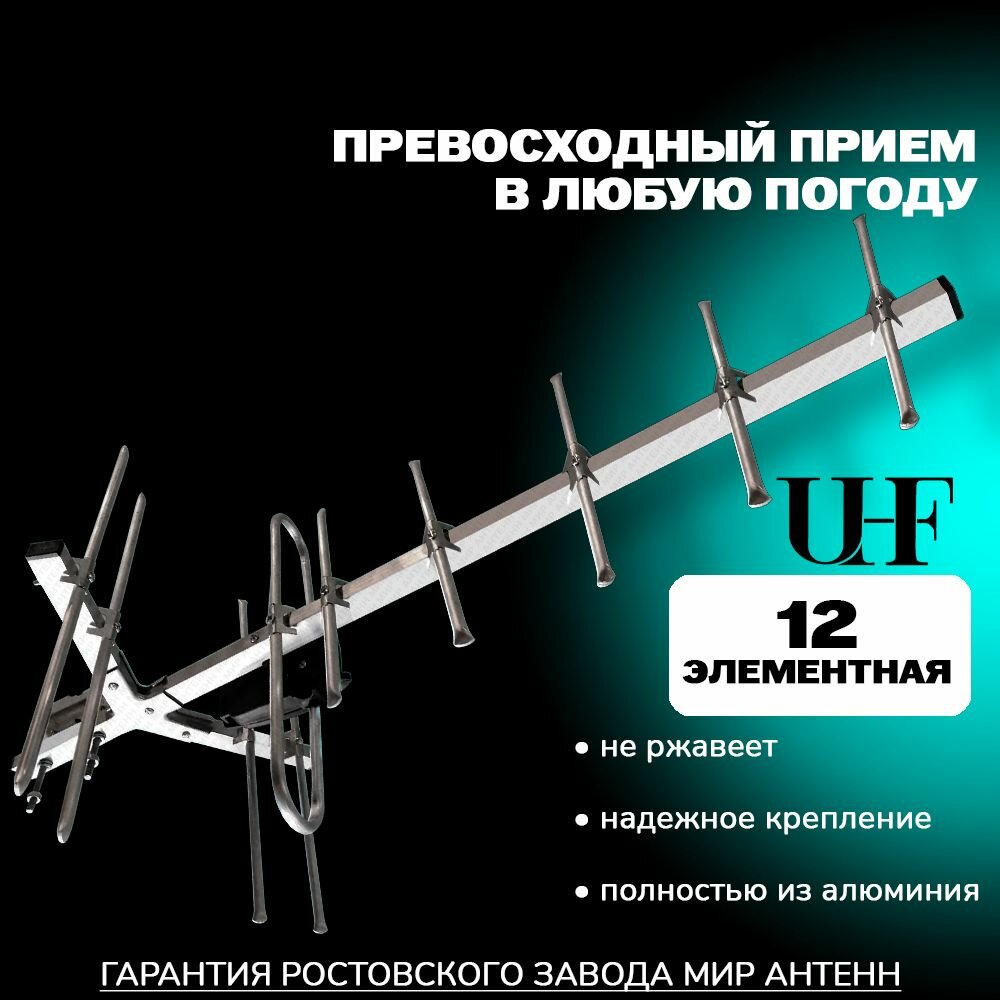 Пассивная антенна для телевизора МИР 12 с кабелем 10 м. уличная цифровая информация: