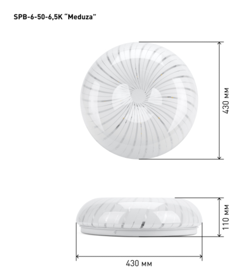 Светильник потолочный ЭРА SPB-6-50-6.5K Meduza светодиодный без дистанционного управления, в металлическом корпусе, мощностью 50Вт, 3200Лм, IP20, размером 430х110мм / освещение информация: