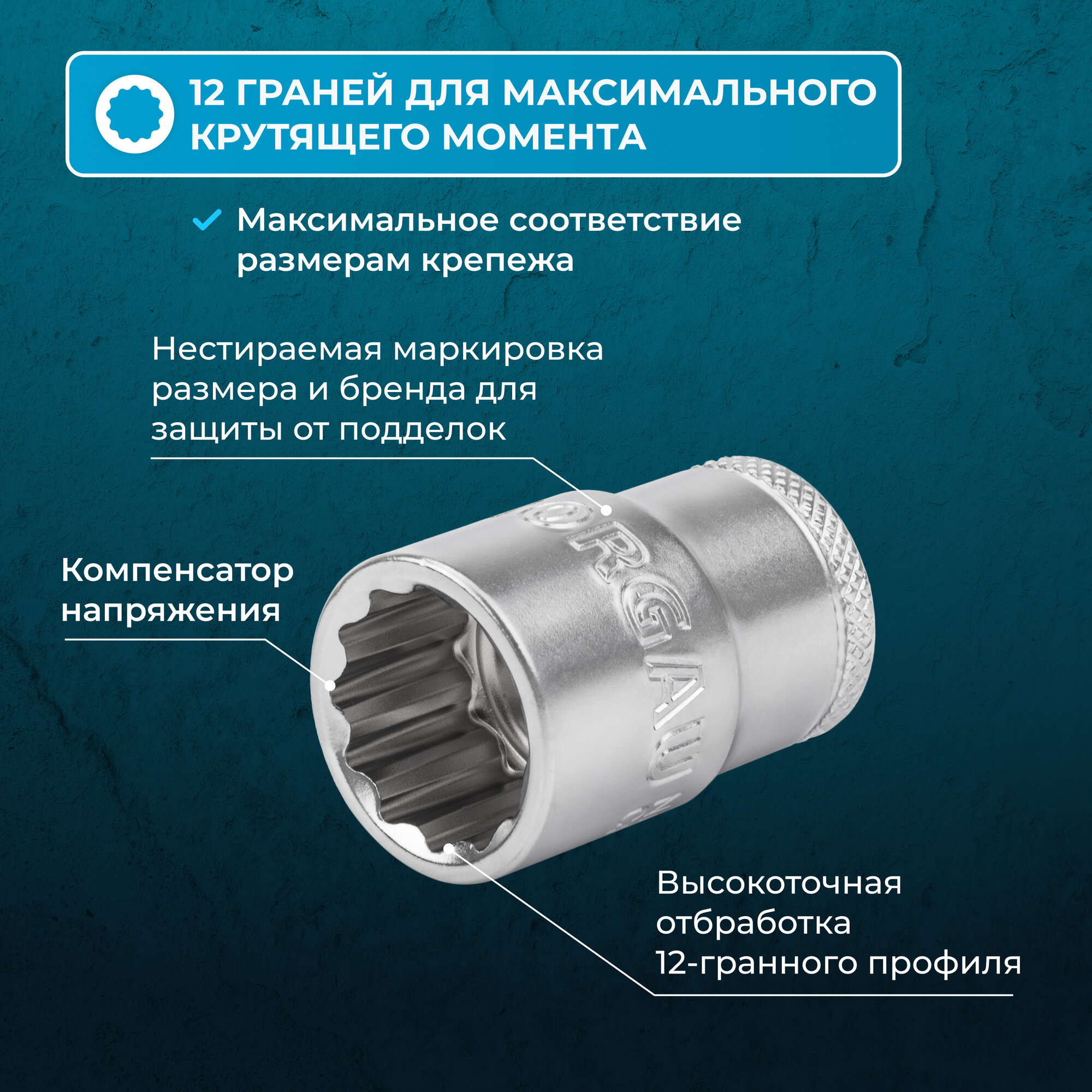 Головка торцевая под квадрат 1" NORGAU Industrial 55 мм 12-гранная для ручного инструмента, DIN 3123