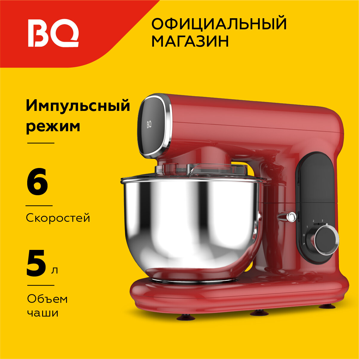 Отзывы на Планетарный миксер с чашей BQ MX822 Красный / Мощность 1600 Вт / 6 скоростей