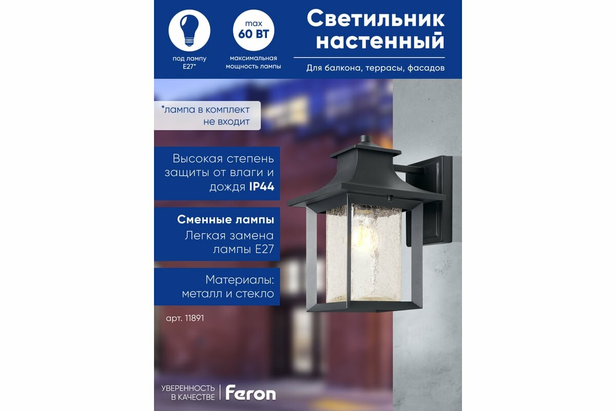 Светильник садово-парковый Feron PL550 на стену вниз 60W E27 230V, черный fr_11891 9 231 ₽