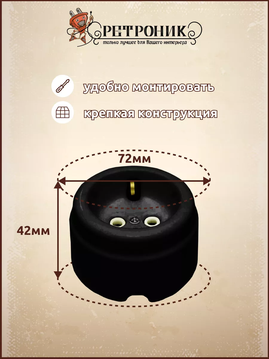 Розетка керамическая ретро Interior Electric, Арбат, с/з 16а, черная, РСЗКR-05 999 ₽