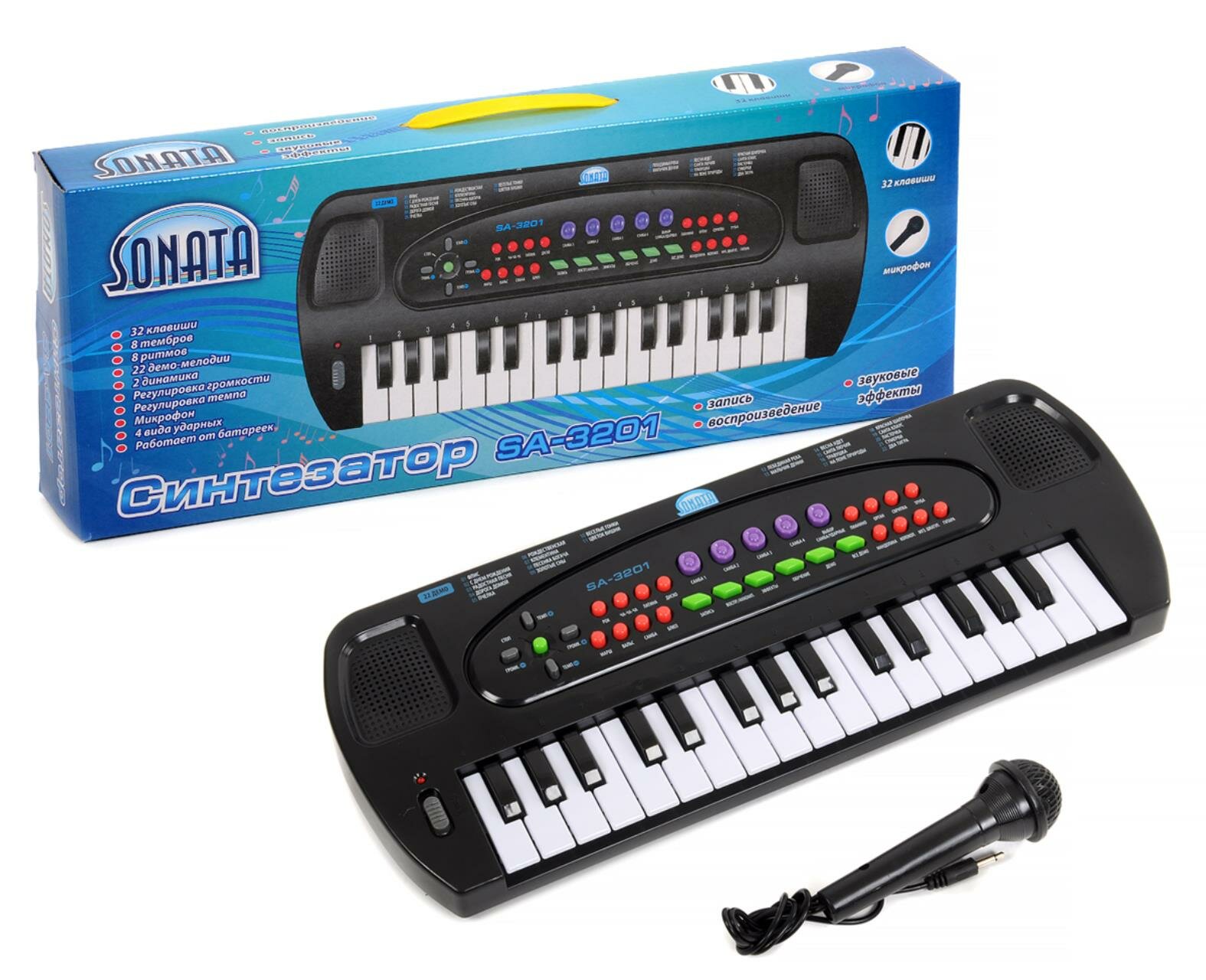 10 цен на Синтезатор "SONATA" руссиф., инструкция, панель. 32 клавиши, 8 тембров, 8 ритмов, 22 демо мелодии, 4