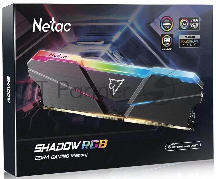Оперативная память NETAC Shadow 16GB (8GB x2), DIMM, DDR4-2666, , RGB, C19, Grey, с радиатором (NTSRD4P26DP-16E) информация: