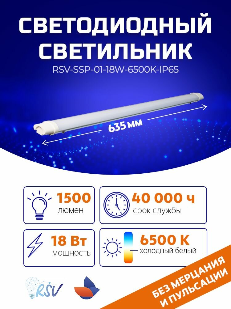 Светильник светодиодный пылевлагозащищенный RSV-SSP-01-18W-6500K-IP65 9803885 983 ₽