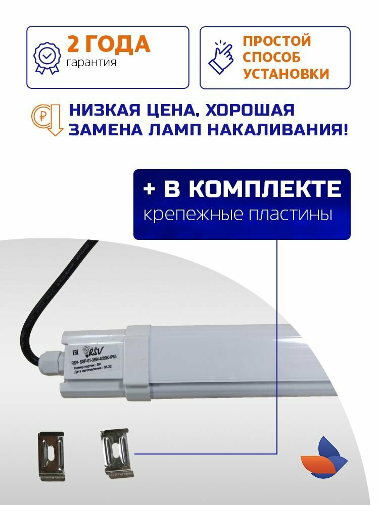 Отзывы на Светильник потолочный светодиодный линейный RSV 18 Вт, 1500 Лм, IP65, RSV-SSP-01-18W-6500K-IP65