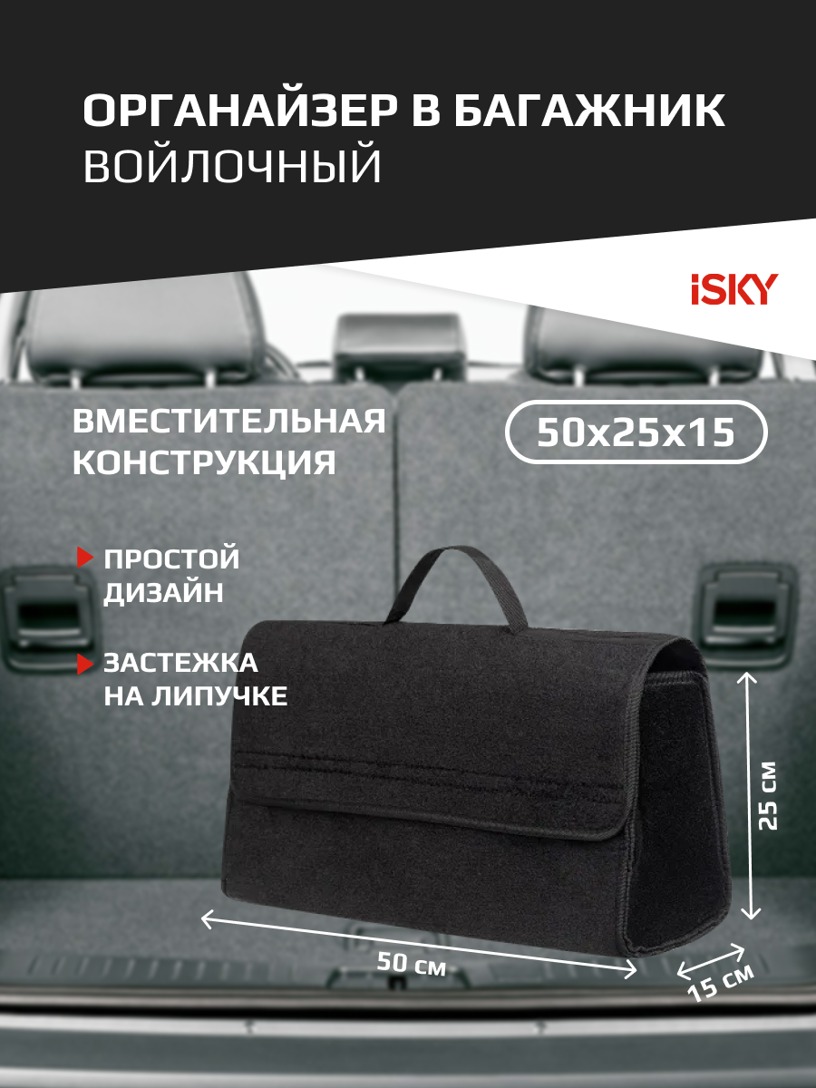 Органайзер в багажник iSky, войлочный, 50x25x15 см, черный арт. iOG-50B информация: