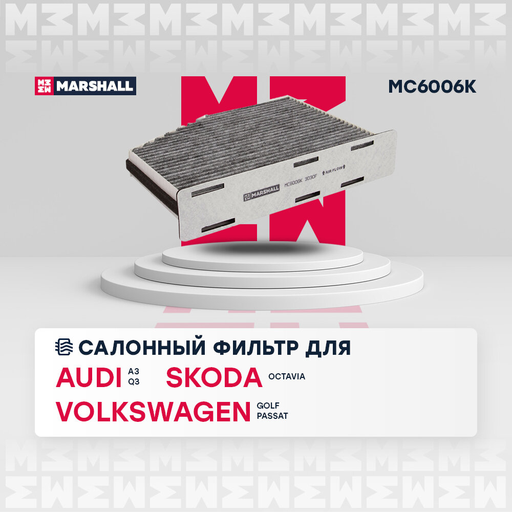 Фильтр салонный угольный Skoda Octavia II (1Z) 04-, VW Golf V, VI 03-, VW Passat (36, 3C) 05- (MC600 MARSHALL MC6006K | цена за 1 шт