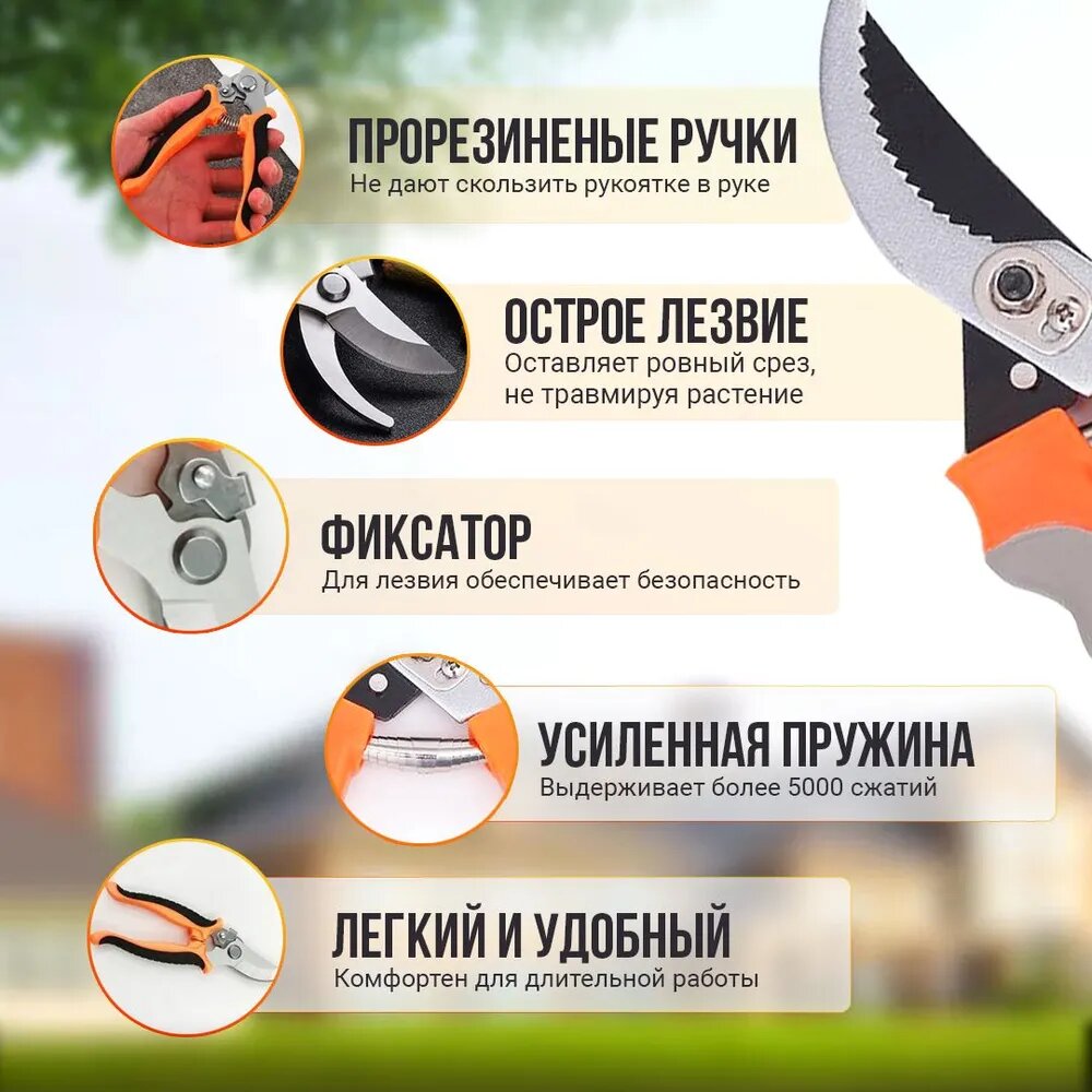 Секатор садовый профессиональный с фиксатором / с лезвиями из закаленной стали , Сучкорез для сырой и сухой древесины / Секатор для обрезки веток, цветов, кустов и деревьев BM информация: