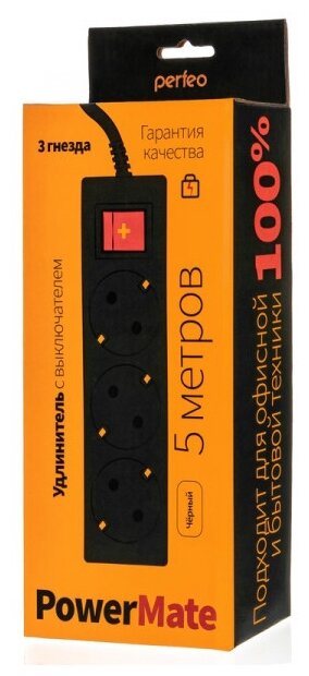 Отзывы на Сетевой удлинитель Perfeo с кнопкой "POWERMATE", 5,0м, 3 розетки, черный (PF_A4680)