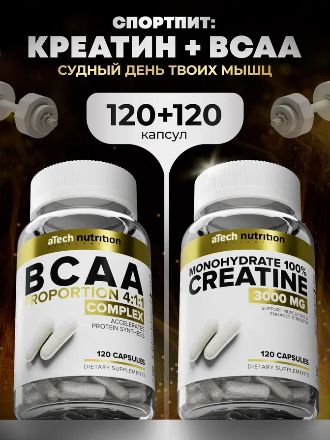 10 цен на Набор Креатин Моногидрат+ ВСАА aTech nutrition
