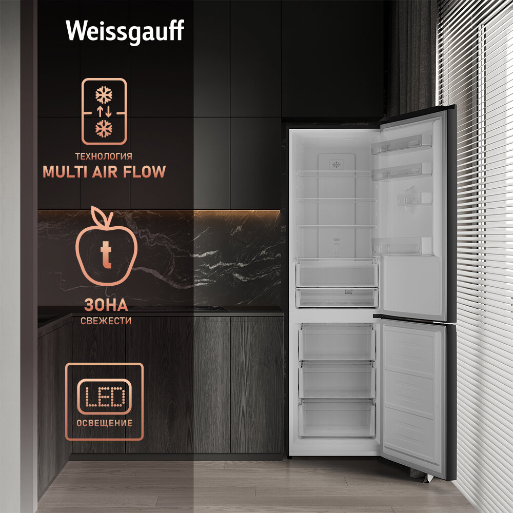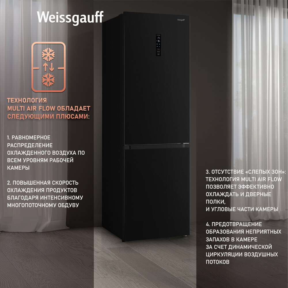 10 цен на Холодильник с морозильной камерой Weissgauff WRK 2000 XBNF DC Inverter, черный, 3 года гарантии, LED освещение, A++