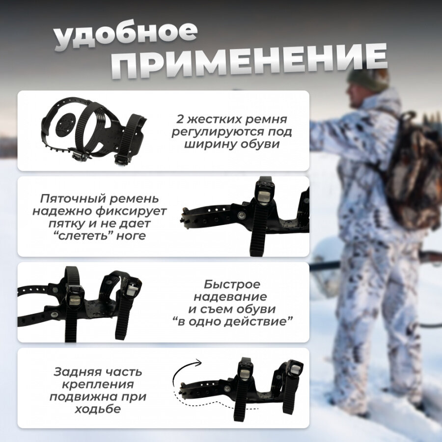 Крепление для лыж охотопромысловых / Лыжное крепление КОХ 002 (ЛРТ + накладка) универсальный размер на повседневную обувь