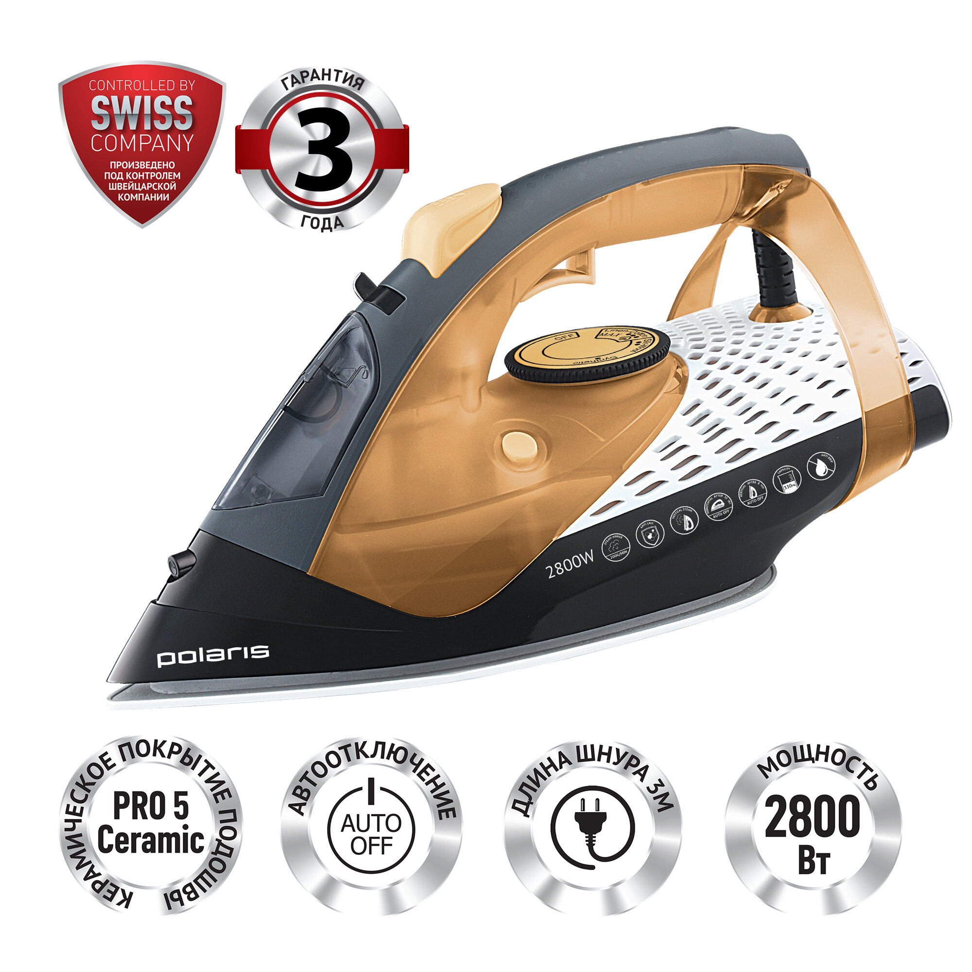 Утюг Polaris PIR 2860AK, черно-золотой