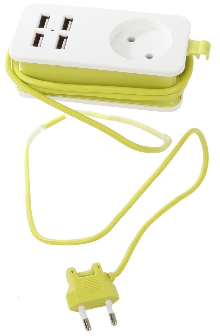 Удлинитель 1х1.5м без заземл. S-CT1-1.5U WHITE-GREEN Travel 4USB2.1A. бел. с салатовым