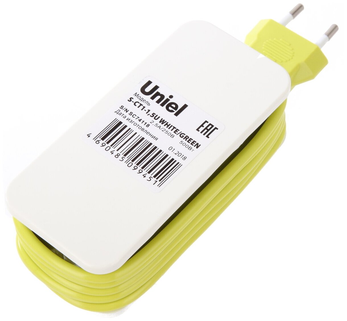 Удлинитель Uniel S-CT1-1,5U WHITE/GREEN информация: