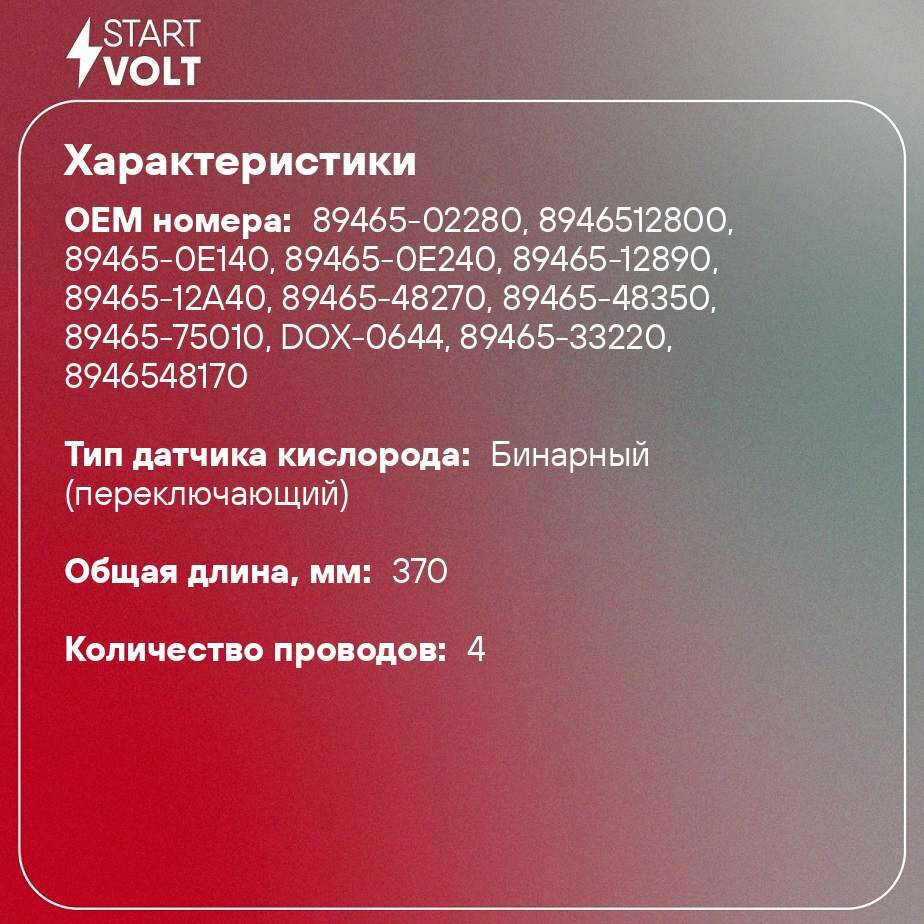 10 цен на Датчик кислорода для автомобилей Toyota Corolla (06-) 1.6i/Camry (01-) 2.4i после катализатора VS-OS 1916 StartVolt