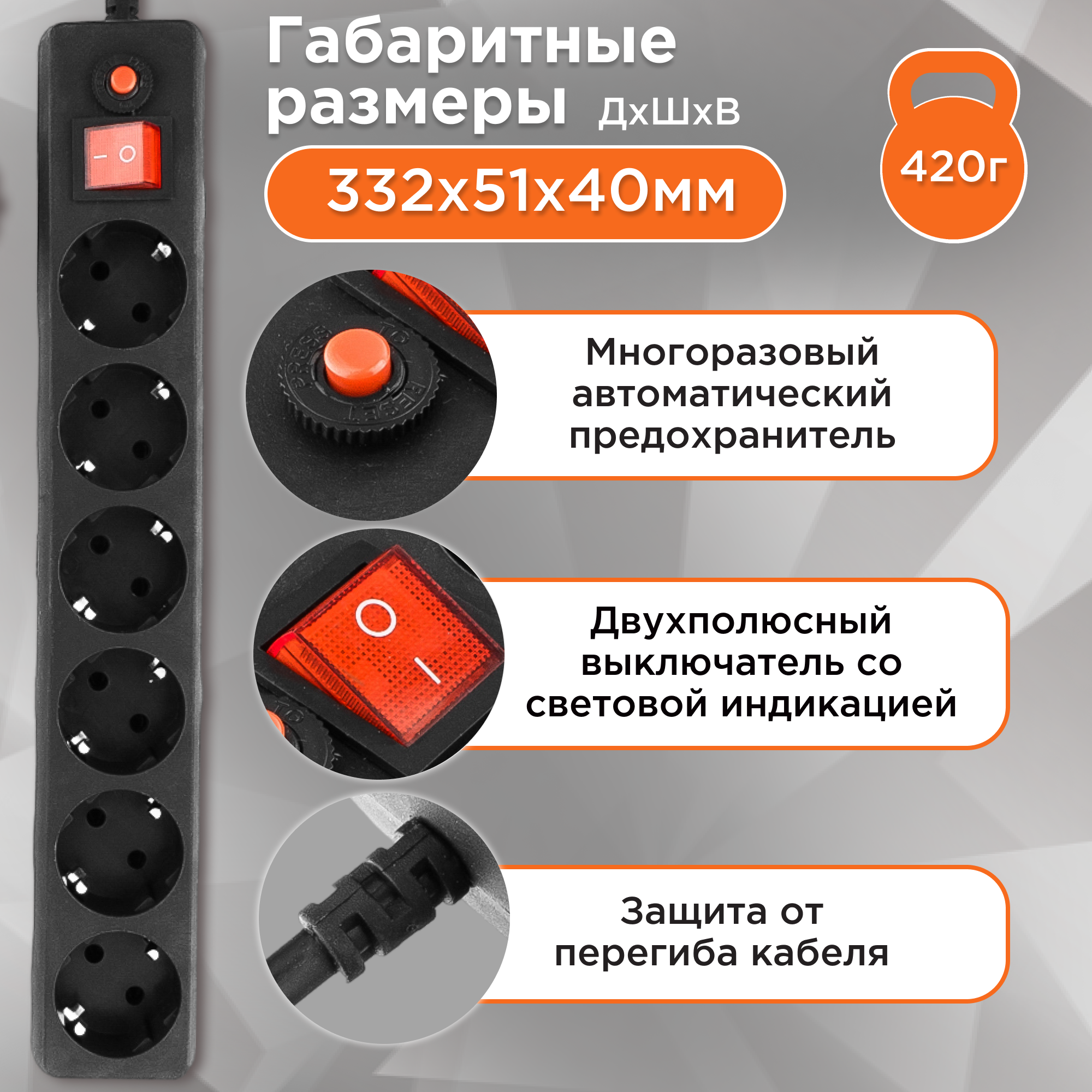 Сетевой фильтр Гарнизон EHB10 - 6 розеток чёрный, 3 метра