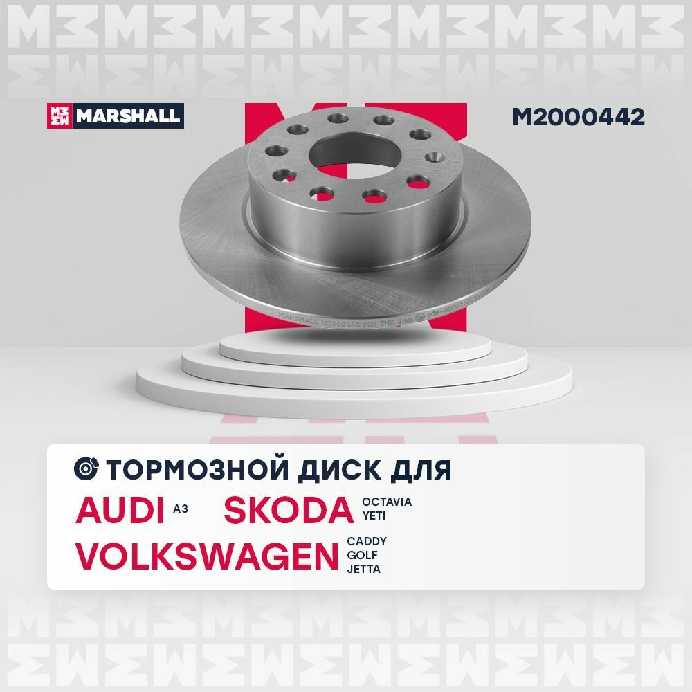 Тормозной диск задн. Audi: A3, Skoda: Octavia, Yeti, VW: Caddy, Golf, Jetta MARSHALL M2000442 MARSHALL M2000442 (мин. 1 шт)