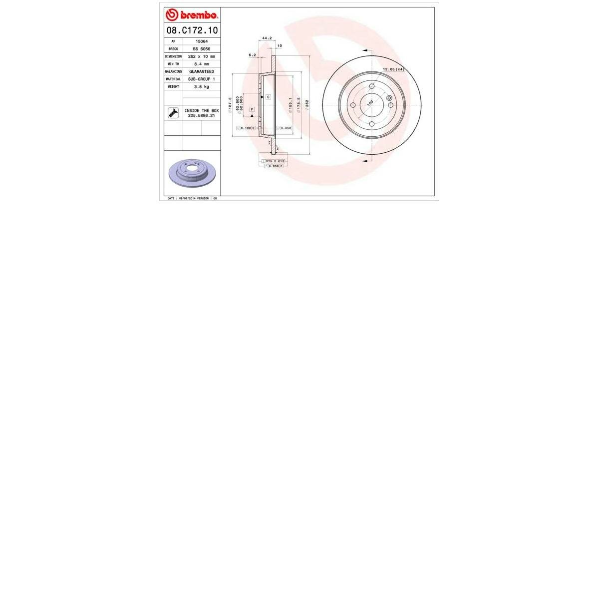 BREMBO 08.C172.10 (08C17210 / 0986479A44 / 15064) диск тормозной задн, : Accent (Акцент) IV 10- : Rio (Рио) (Комплект 2 штуки)