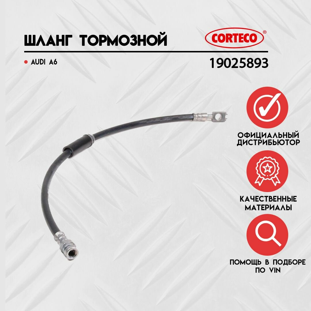 Шланг тормозной AUDI: A6 1.8/1.8 T/1.9 TDI/2.4/2.5 TDI/2.7 T/2.8/3.7 97-05, A6 Avant 1.8/1.8 T/1.9 TDI/2.0/2.4/2.5 TDI/2.7 T/2.8/3.0 quattro/3.7/RS6 CORTECO 19025893