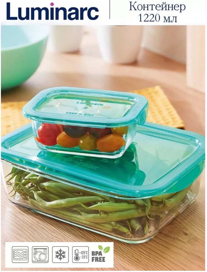Отзывы на Контейнер стеклянный для продуктов, 1220 мл, прямоугольный, KEEP'N'BOX LUMINARC, стекло/крышка пластиковая бирюзовая