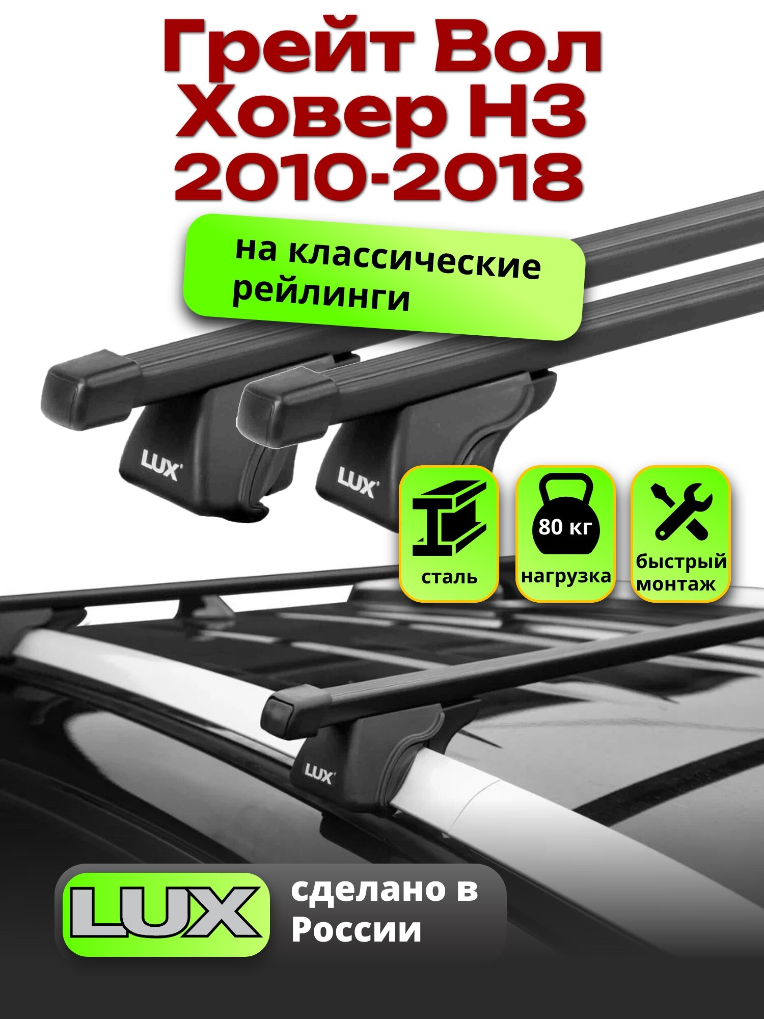 10 цен на Багажник на крышу Грейт Вол Ховер Н3 2010-2018 на рейлинги, черный, LUX классик