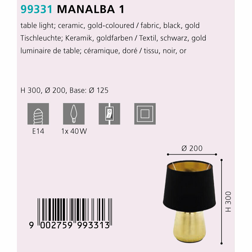 Eglo Настольная лампа Eglo Manalba 99331 информация: