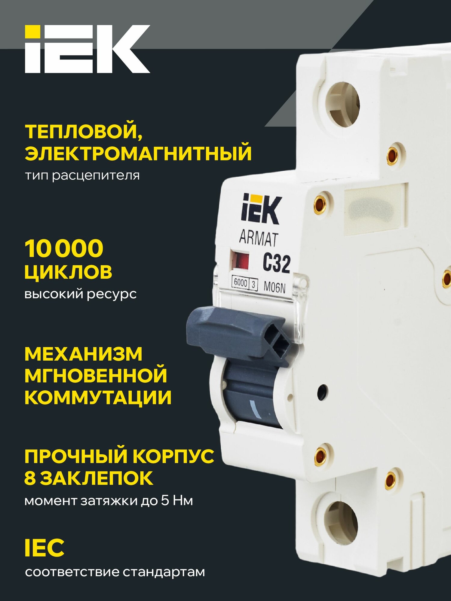 Автоматический выключатель M06N 1P 32А C IEK серия ARMAT информация: