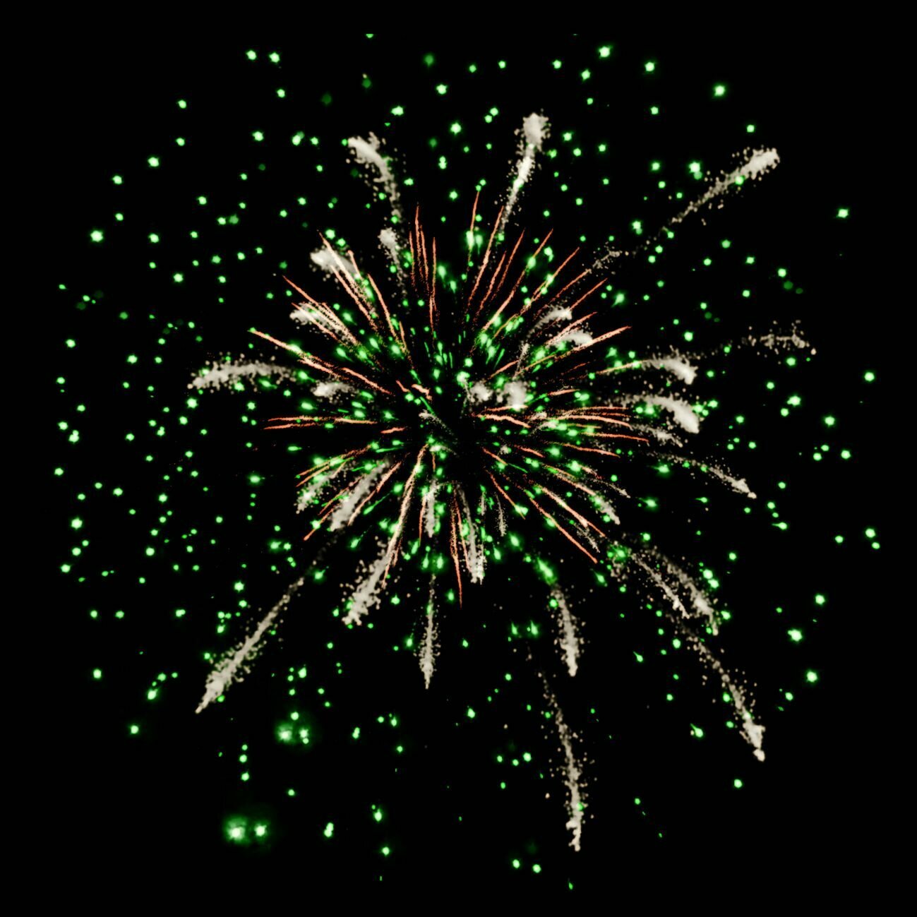 | Эффекты | Эффекты: 1. Разноцветные кометы разрываются сферами. 2. Серебряные форсы / красные и зеленые мерцающие огни. 3. Золотые форсы / зеленые и золотые мерцающие огни. 4. Зеленые огни. 5. Золотые форсы / красные и золотые мерцающие огни. 6. Золотые искристые форсы и красные огни. 7. Золотые искристые форсы и зеленые огни. 8. Красные / зеленые и серебряные мерцающие огни. 9. Серебряные форсы / красные и трещащие серебряные огни. 10. Серебряные форсы / зеленые и золотые трещащие огни. |