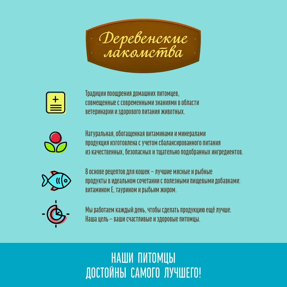10 цен на Деревенские лакомства: Обед № 3, тунец с гребешком, в нежном желе, для кошек, пауч, 50 гр